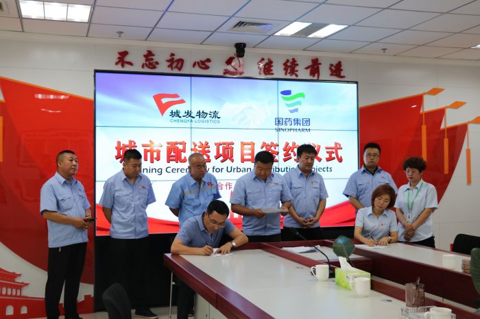7月19日,城發(fā)物流有限責(zé)任公司與內(nèi)蒙古國大醫(yī)藥有限公司舉行了簽約儀式,雙方續(xù)簽了配送合同。物流公司董事長趙永強出席,并代表物流公司簽約。物流公司經(jīng)理丁雪峰、副經(jīng)理王亮、配送中心負(fù)責(zé)人呂先鋒等陪同出席。