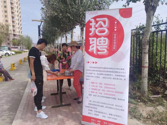 7月10日、11日、19日,物業(yè)公司聯(lián)合內(nèi)蒙古眾信人力資源服務(wù)有限責(zé)任公司赴市勞動人才市場及在管的陽光美居小區(qū)、祥和苑小區(qū),招聘高素質(zhì)的勞務(wù)派遣專業(yè)技能人才和一線員工,并建立了人才儲備庫。
