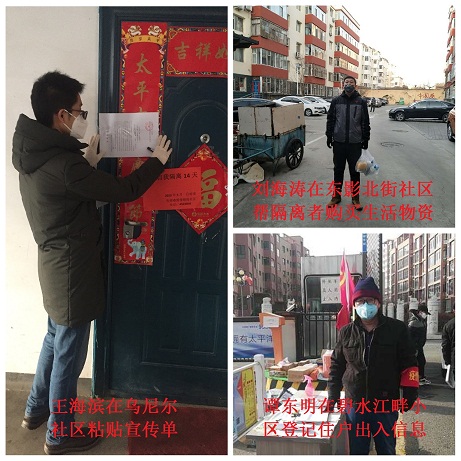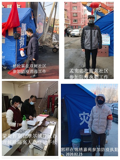 工程處入黨積極分子白文平、職工馬志強、曹明晴、成秀英、楊建剛是金城小區(qū)項目的工程師,疫情發(fā)生后,他們積極響應(yīng)公司號召到各自社區(qū)金城小區(qū)、橋靠社區(qū)、星河御園小區(qū)、廣廈小區(qū)、望興園小區(qū)參加疫情防護工作。他們在各自防控小組中,恪盡職守、站崗執(zhí)勤,每當遇上大風變天或值夜崗時,值守人員都很難取暖,但為了有效防控疫情,他們克服困難自備棉服、把全部問題都扛了下來。同時他們有的白天協(xié)助社區(qū)工作人員辦理登記、執(zhí)勤工作,晚上還要利用空余時間張貼宣傳單,默默的奉獻和堅守又何嘗不是為群眾們再加一層最強的防護網(wǎng)呢!