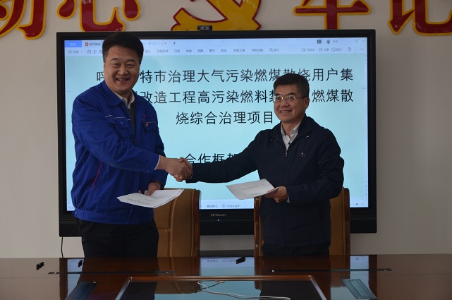 4月15日上午,城發(fā)公司與賽罕區(qū)政府、新城區(qū)政府簽訂《呼和浩特市大氣污染燃煤散燒用戶集中供暖改造工程高污染燃料禁燃區(qū)燃煤散燒綜合治理項目合作框架協(xié)議》。城發(fā)公司總經(jīng)理呂德育、副總經(jīng)理吳利勤、總經(jīng)理助理朱大偉、總工程師胡月在等相關(guān)部門人員參加了簽訂儀式。