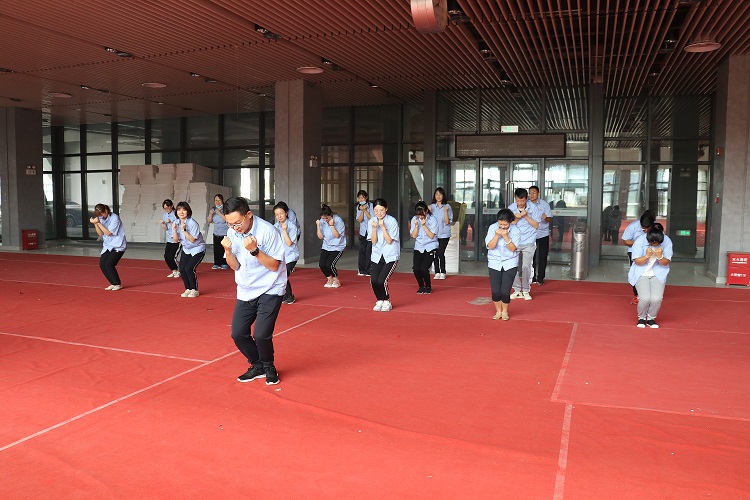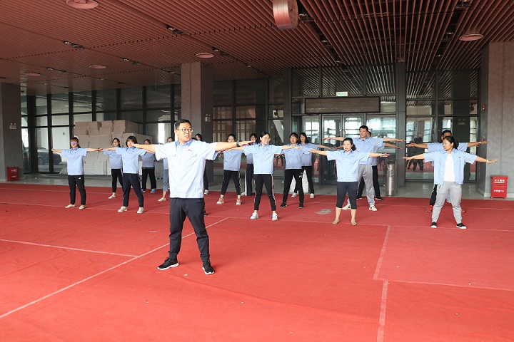 上午10:00第九套廣播體操的音樂準(zhǔn)時(shí)在一樓大廳響起,領(lǐng)操員王龍帶領(lǐng)全體職工就位,首先整理隊(duì)形,接著帶領(lǐng)大家從伸展運(yùn)動(dòng)開始在積極昂揚(yáng)的音樂中聯(lián)系廣播體操,全體員工積極參與,認(rèn)真練習(xí)整個(gè)大廳充滿了活力、健康的氛圍,一天的高效工作由此開啟。