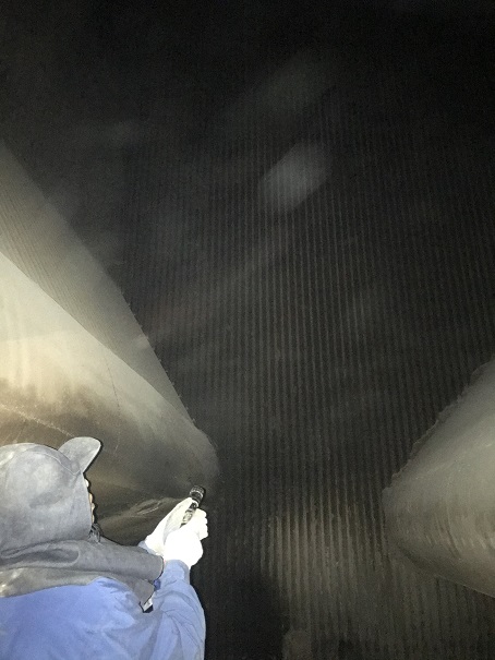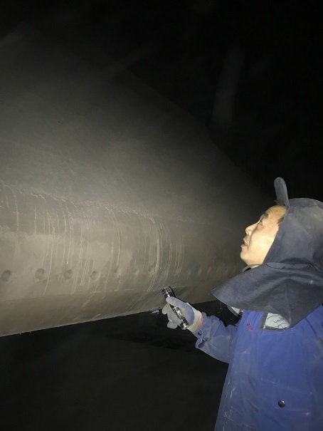 驗收小組一行人通過鍋爐檢修口,進(jìn)入鍋爐內(nèi)部,檢查鍋爐內(nèi)水冷壁管噴涂施工情況。經(jīng)檢查,施工內(nèi)容符合招標(biāo)要求。