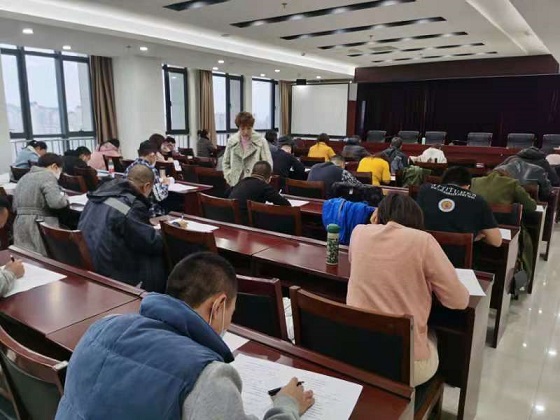 此次考試為閉卷考試,在公司八樓和十八樓會(huì)議室同時(shí)進(jìn)行,共有106名客服崗位員工參加考試。