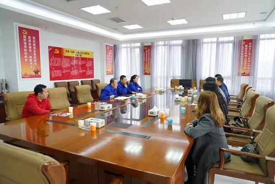 3月18日下午,燕谷坊集團(tuán)工會主席張栓貴一行4人在市總工會三產(chǎn)服務(wù)業(yè)工會主席田喜武及市總基層部部長王佳慧的帶領(lǐng)下,到城發(fā)公司參觀交流學(xué)習(xí),城發(fā)公司黨委副書記、工會主席張永,副主席張智強陪同。