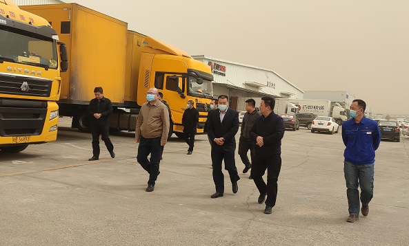 4月15日上午,烏蘭察布市萬益物流園區(qū)董事長王登勇、副總經(jīng)理楊兆天、招商運營部長李玲娟一行赴城發(fā)物流公司惱包園區(qū)、億陽園區(qū)考察調(diào)研,城發(fā)物流公司黨支部書記楊福平、經(jīng)理丁雪峰、副經(jīng)理侯禎接待一行來訪人員。