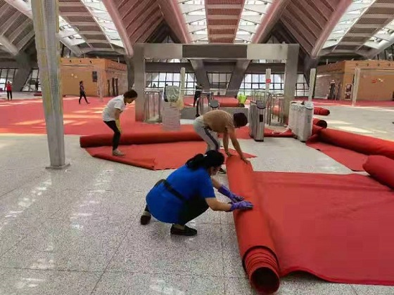 由于東客站長時間閑置導(dǎo)致站內(nèi)外車道、廣場雜草叢生,站內(nèi)通道、大廳地面及辦公區(qū)域灰塵堆積。由于啟用時間緊、作業(yè)面積較大,城發(fā)物業(yè)公司立即組織人員、機械設(shè)備、物料用品,次日一早,工作人員入場保潔,從門前車道、廣場除草、噴藥到建筑外立面玻璃擦拭;從站內(nèi)地面、辦公區(qū)域清潔到客車入站處場地及道路沖洗,隨處都能看到工作人員的身影。原本需要一周的工作,在工作人員的不懈努力下,僅用三天就完成了集團公司安排的保潔工作任務(wù)。使保潔面積2.3萬平米的現(xiàn)場面貌煥然一新,具備了投入使用的條件,也體現(xiàn)了物業(yè)公司能打硬仗、敢于攻堅的企業(yè)精神。