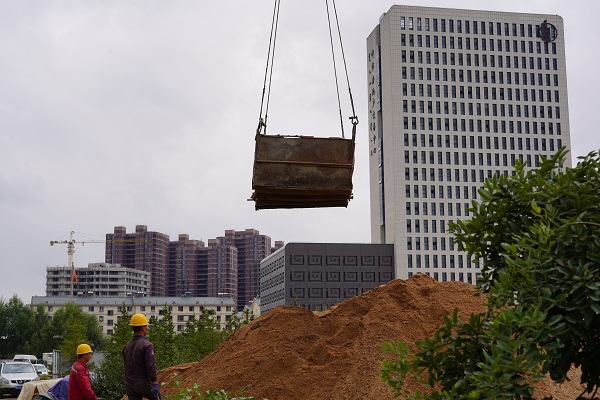 9月24日上午,筆者遠(yuǎn)遠(yuǎn)看到一吊車正將坑內(nèi)挖掘的土方吊起,走近作業(yè)坑,看到坑內(nèi)小型挖掘機正在開挖土方,還有2名施工人員正在進行鋼筋網(wǎng)片的焊接。