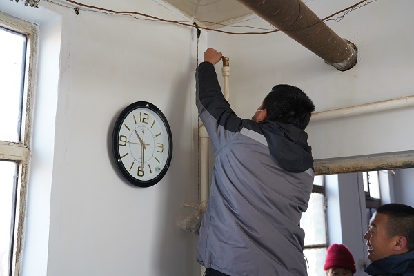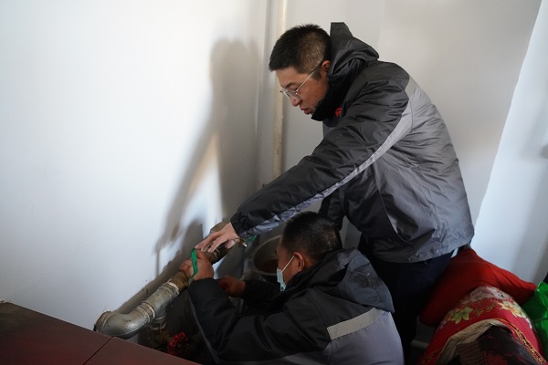 在回訪村中二站南線的路上,一位年近九十的大娘著急地朝我們走來。她說:"到我家看看吧,暖氣不熱。"工作人員跟隨老人來到其家中。大娘家為小南房,大約20平米左右,四面漏風,她的老伴身著棉衣盤腿坐在炕上。工作人員開始進行排氣、調節(jié)閥門、檢查過濾器,最后排查發(fā)現管道內有異物堵塞,經過排污,大娘家中的暖氣逐漸升溫。大爺激動地說:"你們給我修暖氣,忙的連口水也沒喝,娃娃們真好!我家院里有李子樹,明年李子熟了,你們過來吃。"客服處處長云躍看著大爺家簡陋的窗戶,略有所思.....稍后他說:"我們過幾天給大爺家安裝棉窗簾和門簾,讓溫暖到位、服務到位,室溫達標,讓老兩口溫暖過冬。"