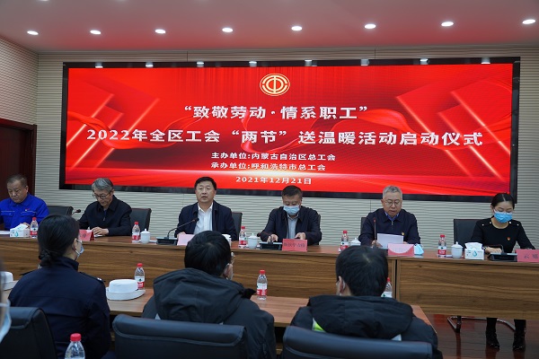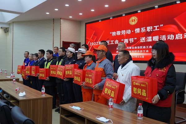 為深入貫徹黨的十九屆六中全會(huì)精神和自治區(qū)第十一次黨代會(huì)精神,不斷深化"我為群眾辦實(shí)事"實(shí)踐活動(dòng)成果。12月21日上午,以"致敬勞動(dòng)情系職工"為主題的2022年全區(qū)工會(huì)"兩節(jié)"送溫暖活動(dòng)啟動(dòng)儀式在城發(fā)橋靠分公司舉行,儀式上為來(lái)自供熱、環(huán)衛(wèi)、快遞、交警、公交及疫情防控、社區(qū)等各行各業(yè)的近50名一線職工代表發(fā)放慰問(wèn)品,送上黨和政府的關(guān)懷、工會(huì)組織的溫暖。呼市總工會(huì)黨組書(shū)記、副主席汪俊亭主持啟動(dòng)儀式。
