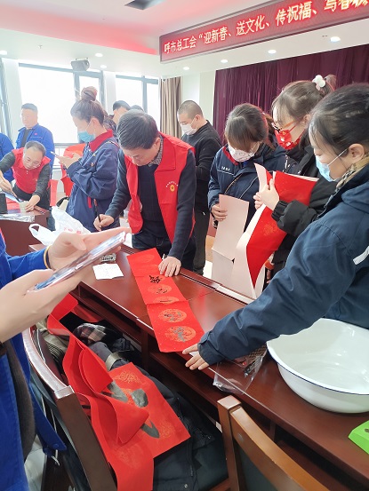 2022年春節(jié)將至,為營(yíng)造歡樂祥和的節(jié)日氛圍,弘揚(yáng)中華民族傳統(tǒng)文化,給集團(tuán)公司職工送上新春美好的祝福, 1月11日下午,呼和浩特市總工會(huì)、集團(tuán)公司工會(huì)組織70余名職工群眾在集團(tuán)18樓會(huì)議室開展"迎新春、送文化、傳祝福、寫春聯(lián)"活動(dòng)。