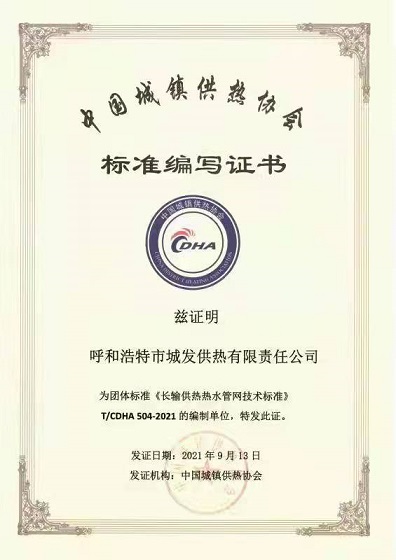 近日,集團(tuán)公司收到參與《長輸供熱熱水管網(wǎng)技術(shù)標(biāo)準(zhǔn)》編寫證書。