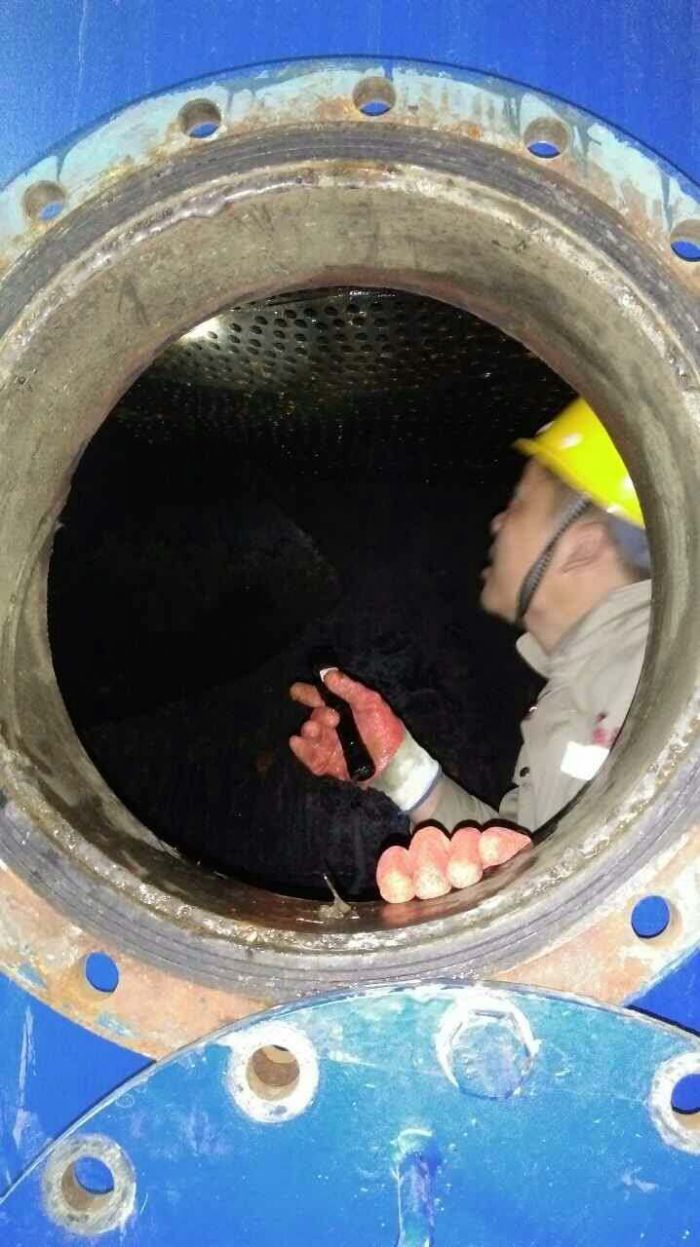 除污器在水系統(tǒng)中有著重要的作用。為了保證水處理系統(tǒng)內(nèi)水質(zhì)的達標,減少因雜物造成的阻力以及水質(zhì)不達標帶來的危害,水化車間的職工每年會定期對除污器進行清掏和沖洗,排出管道中的雜物和污土。清淘工作需要員工鉆入除污器內(nèi)部,對附著在除污器濾柱上的雜物、垃圾進行手工清除,由于除污器內(nèi)操作空間有限,增加了清掏的難度,既臟又累,通過大家的努力,用了一天的時間將A車間除污器清掏完畢。此次清掏收獲頗多,例如:線纜皮、泡沫、甚至還有皮球等。近年來,在分公司領(lǐng)導的高度重視和相關(guān)部門的配合下,除污器排出的垃圾逐年減少,一次網(wǎng)水質(zhì)逐年得到改善。