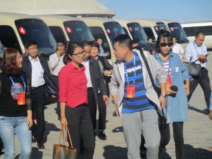 內(nèi)蒙古常委宣傳部長烏蘭,市委書記那順孟和、市長李杰翔及來自內(nèi)蒙古自治區(qū)12個盟市及自治區(qū)、呼和浩特市相關(guān)單位的代表來到內(nèi)蒙古少數(shù)民族群眾文化體育運動中心項目進(jìn)行實地觀摩。