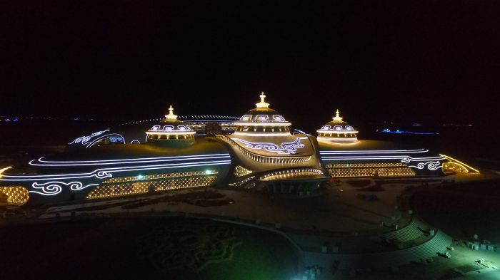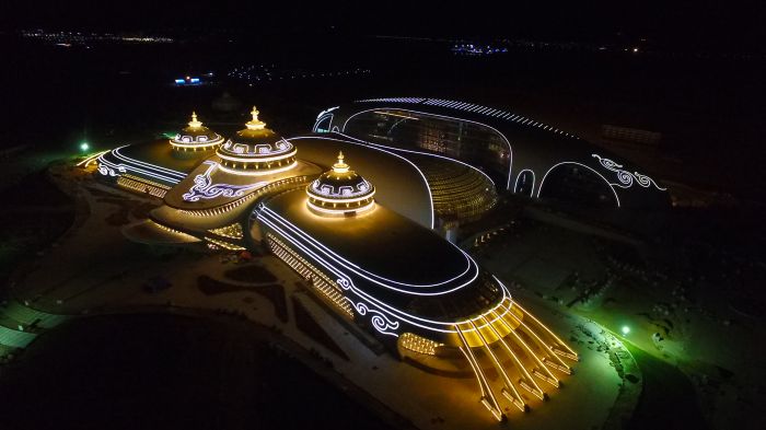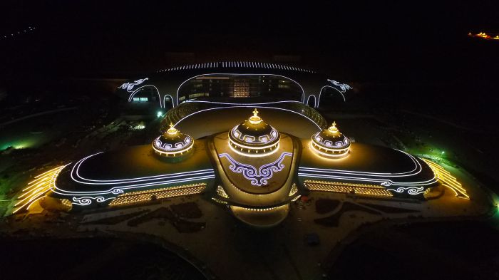 截止到2017年4月30日,內蒙古少數(shù)民族群眾文化體育運動中心項目完成投資共7.67億,目前各建筑物主體已完成,亮化工程完成80%,燈光效果初具模型。