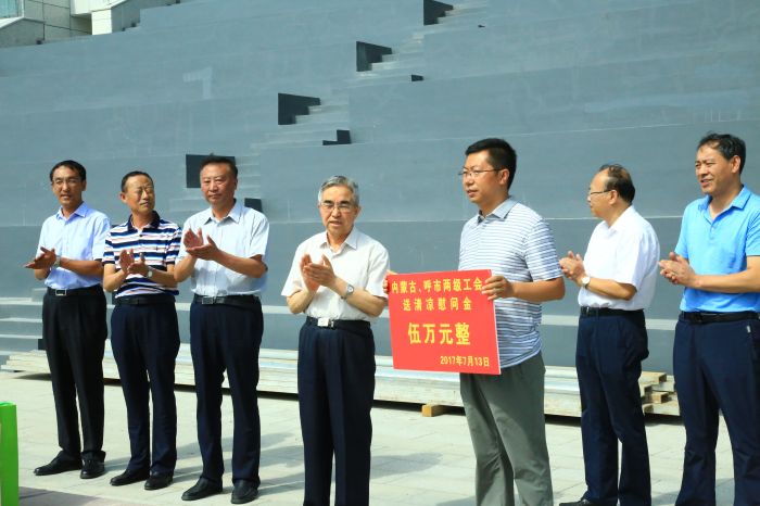 7月13日,內蒙古自治區(qū)人大常委會副主任、總工會主席杭桂林,呼和浩特市政府副巡視員、黨組成員劉敏,市人大常委會副主任、總工會主席斯欽畢力格等一行向奮戰(zhàn)在我市重大項目重點工程內蒙古少數民族群眾文化體育運動中心一線施工現場的工作人員進行送清涼慰問,發(fā)放5萬元慰問金,表達了兩級政府對我市重大項目重點工程一線單位職工的深切問候和關懷。城發(fā)公司董事長、黨委書記張瑞平,黨委副書記、工會主席張永等領導陪同。文\陳柯羽