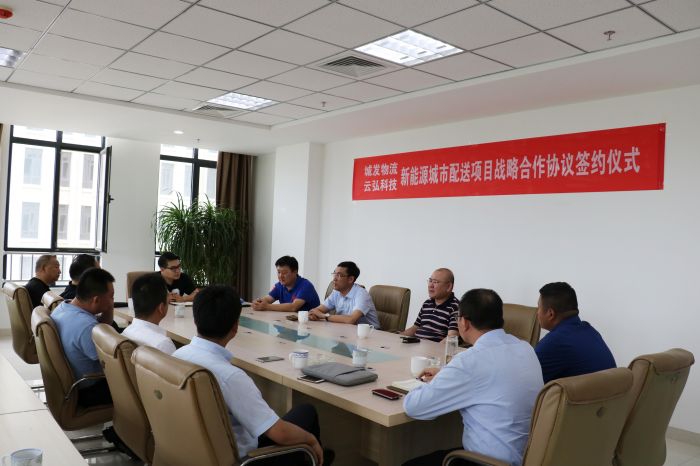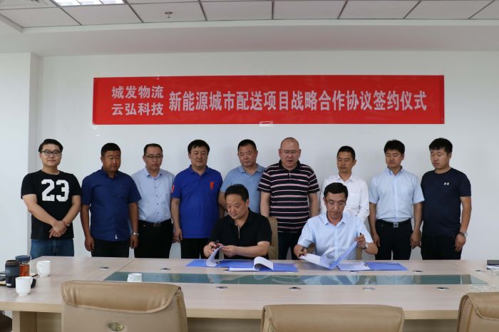 2018年5月16日下午,城發(fā)物流公司與內(nèi)蒙古云弘科技有限責(zé)任公司就新能源城市配送項目簽訂了戰(zhàn)略合作協(xié)議。