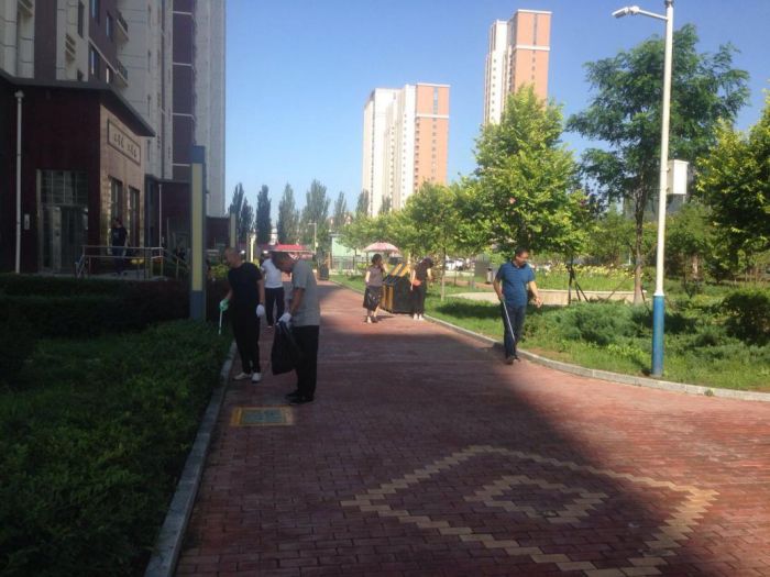 客服提升小組在小區(qū)明顯位置擺放展臺和宣傳畫,向業(yè)主征詢服務滿意度,發(fā)放關于消防安全等宣傳單;保潔綠化小組成員配合小區(qū)全體保潔人員開展清掃環(huán)路衛(wèi)生、撿拾草坪內的垃圾、清洗垃圾箱等衛(wèi)生清潔工作;工程提升小組成員對金城小區(qū)的單元門開啟不靈、關閉不嚴等問題進行了現場維修。