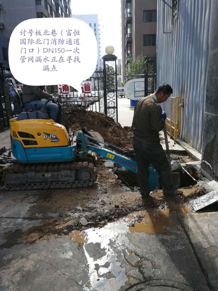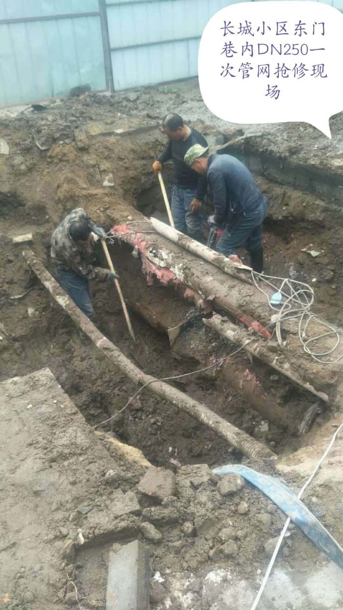 9月29日,管網(wǎng)公司接到辛家營(yíng)供熱分公司搶修通知,騰飛南路如意廣場(chǎng)環(huán)形路口北側(cè)東綠化帶中發(fā)現(xiàn)一處冒水現(xiàn)象。管網(wǎng)公司領(lǐng)導(dǎo)高度重視,迅即安排人手,查找漏水點(diǎn)。他們憑借豐富的搶修經(jīng)驗(yàn),決定采用十字釘,直架設(shè)于涵管之上,創(chuàng)造人工作業(yè)通道,根據(jù)涵管內(nèi)水流方向判斷,搶修人員在胸腹部綁上滑板及護(hù)具,在DN600熱力管道中向西滑行50米左右,終于發(fā)現(xiàn)了漏水點(diǎn)。為了給供暖投運(yùn)工作贏取時(shí)間,參與搶修的20余人輪班作業(yè),連續(xù)奮戰(zhàn)7個(gè)晝夜,10月6日,圓滿完成搶修任務(wù)。