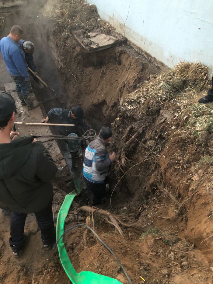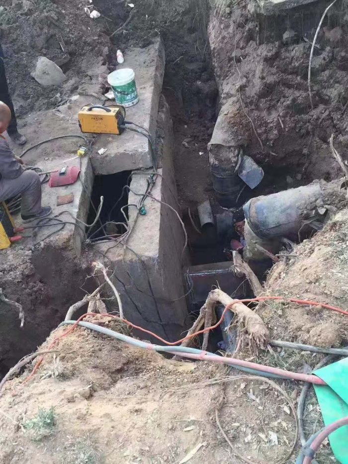 11月11日下午,中繼泵房專項高壓電閃落,1#、2#、3#循環(huán)泵因自動保護(hù)驟停。出現(xiàn)異常后,調(diào)度立即通知京能電廠降頻,檢修車間立即組織人員進(jìn)行巡線,經(jīng)過15個小時不間斷排查,12日上午,發(fā)現(xiàn)如意舊網(wǎng)主線和1#站支線漏水嚴(yán)重。分公司檢修車間、運營二所和保駕護(hù)航單位迅速制定搶修方案組織搶修,經(jīng)理丁成斌、副經(jīng)理鄭紅飛親自到現(xiàn)場指導(dǎo)搶修工作。為準(zhǔn)確找到失水點,搶修人員穿著隔熱服進(jìn)入管溝內(nèi)查找漏點。由于漏水點管線錯綜復(fù)雜,施工難度非常大。接近管道時,發(fā)現(xiàn)漏點位置靠近井壁且管道腐蝕嚴(yán)重,壁厚較薄,采取整理外層補焊的方式進(jìn)行修補。