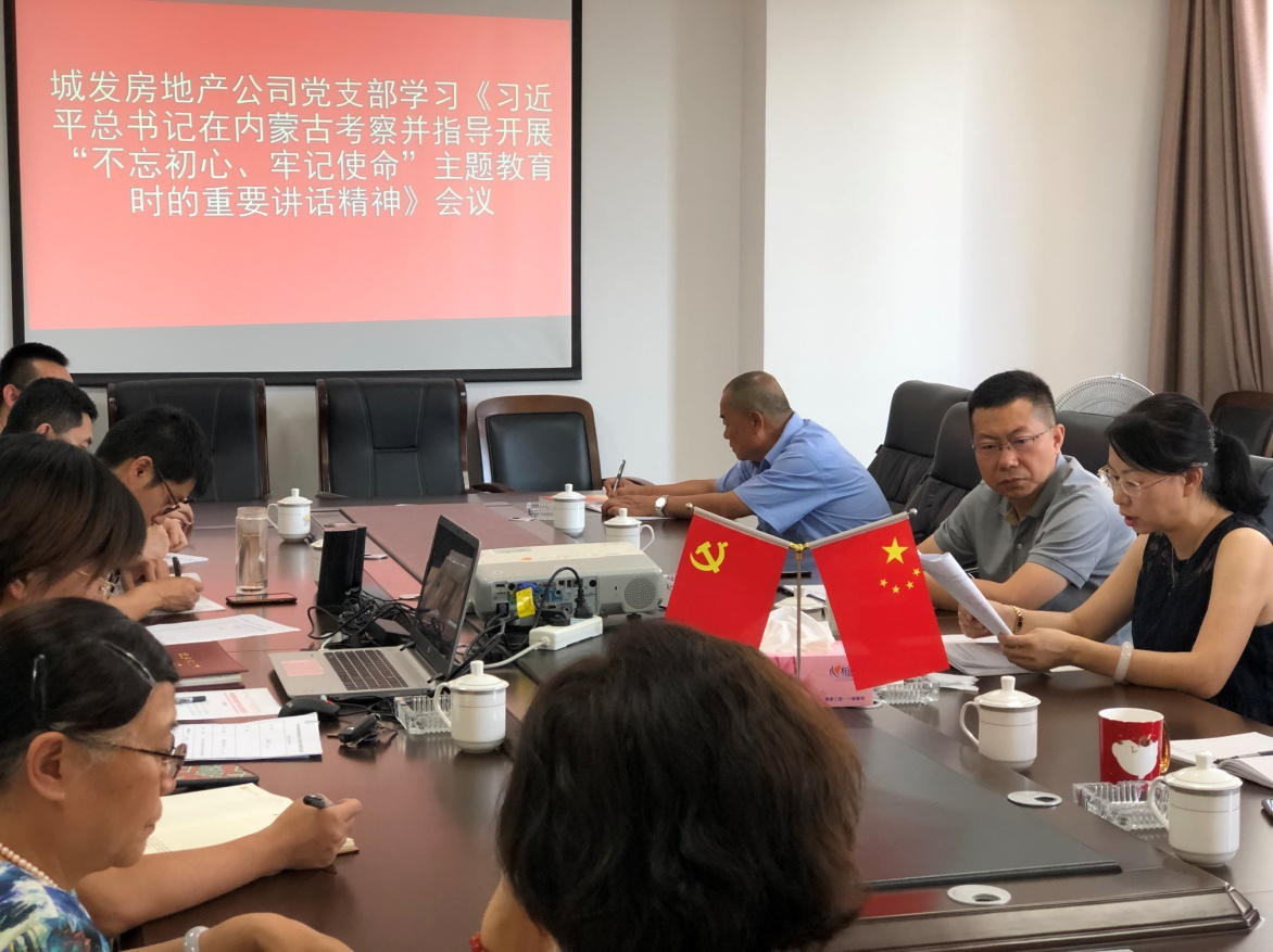 7月25日,房地產(chǎn)公司黨支部組織公司全體黨員干部和入黨積極分子,在城發(fā)集團(tuán)11樓會議室學(xué)習(xí)了習(xí)近平總書記在內(nèi)蒙古考察并指導(dǎo)開展“不忘初心、牢記使命”主題教育時的重要講話精神。