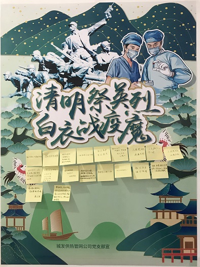 黨支部還制作了祭奠海報(bào),張貼在樓道醒目位置,黨員群眾可以隨時(shí)進(jìn)行祭掃活動(dòng),并留下祭掃寄語,祭奠在中國(guó)革命、建設(shè)、改革歷史進(jìn)程中英勇犧牲烈士的同時(shí),致敬在抗擊疫情一線犧牲的醫(yī)護(hù)人員、公安干警等"逆行英雄"。
