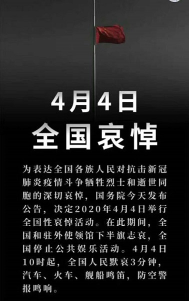 10:00時(shí)起,不論是在家中休息還是在工作崗位,全體黨員、預(yù)備黨員、積極分子,莊嚴(yán)肅立,和全國(guó)人民一起為逝去的英雄和同胞默哀三分鐘,向疫情中犧牲的烈士致敬,向?yàn)?zāi)難面的逆行者致敬!向百姓的守護(hù)者致敬!