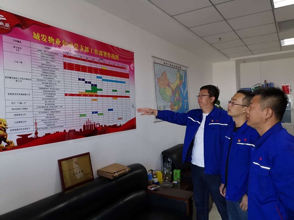 6月1日,城發(fā)物業(yè)公司黨支部辦公室、黨群工作處的兩張黨建工作部署作戰(zhàn)圖展板,吸引了全體干部職工的注意力。這兩張展板不僅詳細(xì)地安排部署了今年黨建的各項(xiàng)重點(diǎn)工作和日常工作,同時(shí)按照時(shí)間節(jié)點(diǎn),細(xì)化操作舉措,掛圖作戰(zhàn),序時(shí)推進(jìn),精準(zhǔn)發(fā)力,穩(wěn)扎穩(wěn)打,逐步推進(jìn)基層黨組織建設(shè)工作水平。