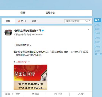 此外,公司還充分運(yùn)用電子顯示屏、微博等媒介宣傳、普及保密法律法規(guī),把保密和密碼宣傳教育工作延伸到廣大群眾中去,努力樹立保守國家秘密人人有責(zé)的意識(shí)和國家觀念。