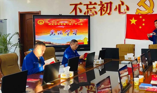 “我宣誓:忠于中華人民共和國憲法,維護憲法權(quán)威,履行法定職責(zé)……”隨著國歌嘹亮奏響后,黨委委員、總經(jīng)理呂德育親自領(lǐng)誓,黨委副書記張永監(jiān)誓,其他宣誓人在領(lǐng)誓人身后列隊站立,全體面向國旗,左手緊捧憲法,右手舉拳,跟誦誓詞,向憲法莊嚴(yán)宣誓。隨后,班子成員進行了憲法學(xué)習(xí)活動,集體觀看了《憲法知識視頻講堂》,從憲法的“內(nèi)容、原則、意義、作用”到“修正后的規(guī)定”等方面進行了學(xué)習(xí)。