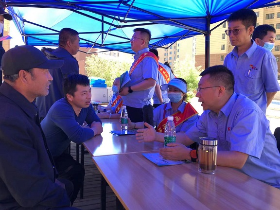 電腦、座椅的布置等準(zhǔn)備工作 ?;顒?dòng)中,現(xiàn)場(chǎng)氣氛活躍 ,人流較多,志愿者們不怕風(fēng)吹日曬,熱情的向廣大群眾發(fā)放了公司專門(mén)制作的公租房銷售和產(chǎn)權(quán)辦理宣傳圖冊(cè),并現(xiàn)場(chǎng)為部分購(gòu)房群眾發(fā)放購(gòu)房發(fā)票和網(wǎng)簽合同。大家現(xiàn)場(chǎng)還詳細(xì)介紹了公租房購(gòu)買(mǎi)條件、流程以及辦理不動(dòng)產(chǎn)權(quán)證等政策知識(shí),耐心的解答了群眾關(guān)于購(gòu)買(mǎi)公租房和辦理產(chǎn)權(quán)政策的各種疑慮 、困惑 。同時(shí)黨支部書(shū)記郭依群同志 、經(jīng)理李錚同志積極聽(tīng)取群眾意見(jiàn)建議,主動(dòng)協(xié)調(diào)市住建局開(kāi)放小區(qū)北門(mén),方便群眾出行 。