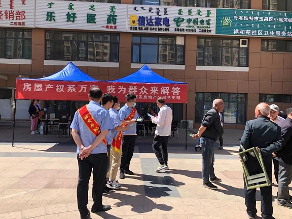 在祥和苑公租房小區(qū)社區(qū)服務(wù)中心,志愿者們向廣大群眾詳細(xì)的介紹了公租房購買條件和流程,以及辦理不動(dòng)產(chǎn)權(quán)證等政策知識(shí),并為購房群眾現(xiàn)場(chǎng)發(fā)放了辦理不動(dòng)產(chǎn)權(quán)證的發(fā)票和網(wǎng)簽合同。同時(shí)大家還主動(dòng)前往小區(qū)人流較多的北門,熱情的向廣大群眾發(fā)放了公司專門制作的公租房銷售和不動(dòng)產(chǎn)權(quán)證宣傳圖冊(cè),耐心的為群眾解答購買公租房和辦理產(chǎn)權(quán)政策的各項(xiàng)疑慮、困惑。