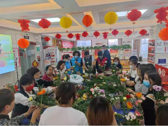活動(dòng)現(xiàn)場(chǎng),來(lái)自企業(yè)、社區(qū)的各族職工、居民興致勃勃地與花藝師交流互動(dòng),請(qǐng)教一些插花方面的專(zhuān)業(yè)知識(shí),并在老師的講解示范下,創(chuàng)作自己的作品。一枝一葉通過(guò)他們的精心構(gòu)思化作了一個(gè)個(gè)造型優(yōu)美、寓意豐富、活靈活現(xiàn)的濃縮景觀(guān),寄托著他們對(duì)幸福生活的由衷贊美;一花一蕊通過(guò)他們的精巧點(diǎn)綴變成了姹紫嫣紅、香氣撲鼻、爭(zhēng)奇斗艷的立體畫(huà)廊,放飛著他們對(duì)多彩人生的憧憬遐想。大家捧著自己的作品愛(ài)不釋手,觀(guān)賞著同伴的成果互相切磋,現(xiàn)場(chǎng)洋溢著花香和歡笑。
