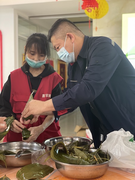 包粽子活動(dòng)中,大家捋粽葉、填糯米、壓實(shí)、封口、打捆……熱情高漲,精工細(xì)作、巧手翻飛、各顯其能,既分工又合作,一邊交流著包粽子的技巧,一邊嘮上幾句家常,沉浸在歡樂(lè)和諧的氣氛中。三角形、牛角形……隨著各環(huán)節(jié)的制作完成,一個(gè)個(gè)粽子紛紛成型,各式各樣的漂亮粽子出鍋了,空氣中散發(fā)著清爽甘醇的氣息,既讓大家感受到傳統(tǒng)節(jié)日中蘊(yùn)涵的意義,增強(qiáng)了愛(ài)國(guó)主義情懷,又加深了社區(qū)居民、企業(yè)員工之間的友誼感情,營(yíng)造了“一家親”的濃厚氛圍。