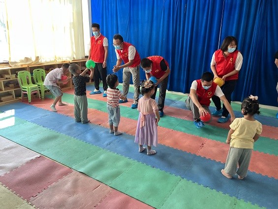 活動現(xiàn)場,愛心小分隊一行將精心準(zhǔn)備的慰問品送到孩子們的手中,與他們親切交談,參觀孩子們學(xué)習(xí)、生活的環(huán)境,詳細了解孩子們的學(xué)習(xí)、生活狀況。隨后,愛心小分隊與孩子們進行了搶板凳、接皮球等互動游戲,在歡聲笑語中,志愿者與孩子們結(jié)下了深厚的友誼。