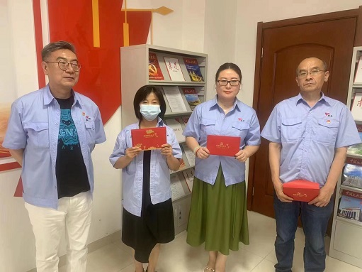 胡日查同志宣讀了集團(tuán)公司黨委審批通過(guò)齊樂(lè)、張學(xué)敏兩位同志成為中國(guó)共產(chǎn)黨預(yù)備黨員,莊永飛、劉濤兩位同志按期轉(zhuǎn)為中國(guó)共產(chǎn)黨正式黨員相關(guān)事宜,并向齊樂(lè)、張學(xué)敏兩同志表示了衷心祝賀,要求她們?cè)诮窈蟮膶W(xué)習(xí)和工作中不斷用實(shí)際行動(dòng)踐行初心使命,以黨員的標(biāo)準(zhǔn)嚴(yán)格要求自己,時(shí)刻保持共產(chǎn)黨員的良好形象、先進(jìn)本色。隨后,胡日查同志帶領(lǐng)齊樂(lè)、張學(xué)敏兩位同志和其他全體黨員同志高舉右手,莊嚴(yán)宣誓,再一次重溫入黨誓詞,重憶入黨初心。齊樂(lè)、張學(xué)敏兩位同志表示,作為新時(shí)代的青年,將牢記黨的宗旨,牢記入黨初心和使命,腳踏實(shí)地做好本職工作,以飽滿(mǎn)的熱情和昂揚(yáng)的斗志投入到工作中去。